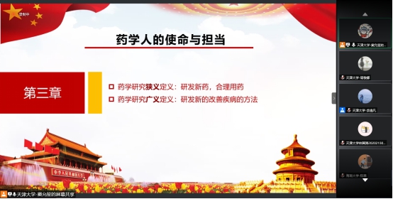 天津大学药学院窦允笙同志从“社会主义发展史” “信念点亮社会主义道路”和“药学人的使命与担当”三个方面带我们展开信念这一主题的学习。