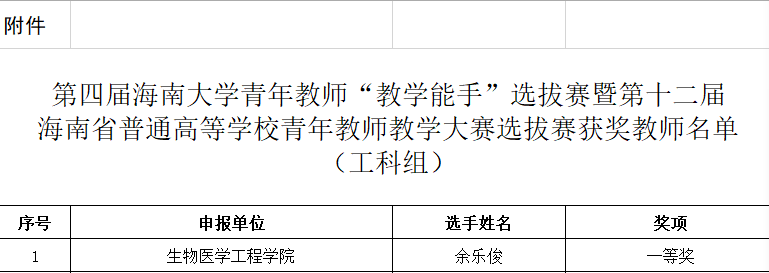 近日,海南大学公布了第四届海南大学青年教师“教学能手”选拔赛暨第十二届海南省普通高等学校青年教师大赛选拔赛的选拔结果,博牛网 余乐俊老师荣获工科组一等奖,并将代表海南大学参加第十二届海南省普通高等学校青年教师教学大赛。博牛 在此次比赛中获得优秀组织奖。