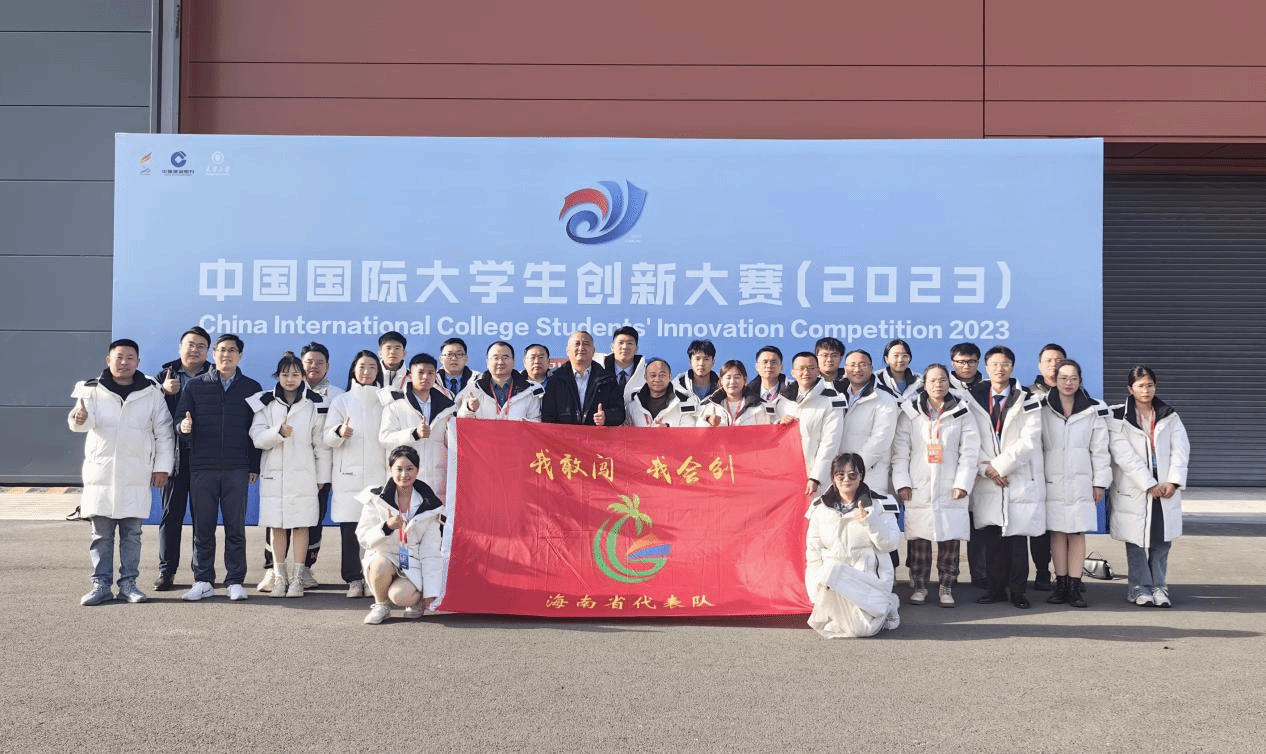 海南省教育厅厅长李湖与中国国际大学生创新大赛(2023)金奖团队合影。