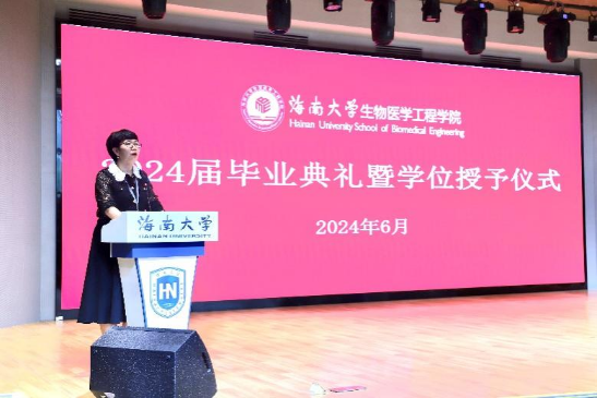 2024届毕业典礼在崖州湾科技城学院楼B104报告厅隆重举行。海南大学校长、中国科学院院士骆清铭,博牛
