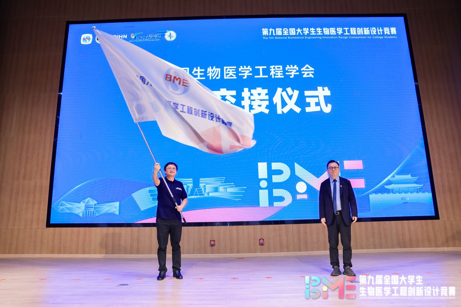现场还举行了会旗交接仪式,第十届全国大学生生物医学工程创新设计竞赛将由西安交通大学承办。
