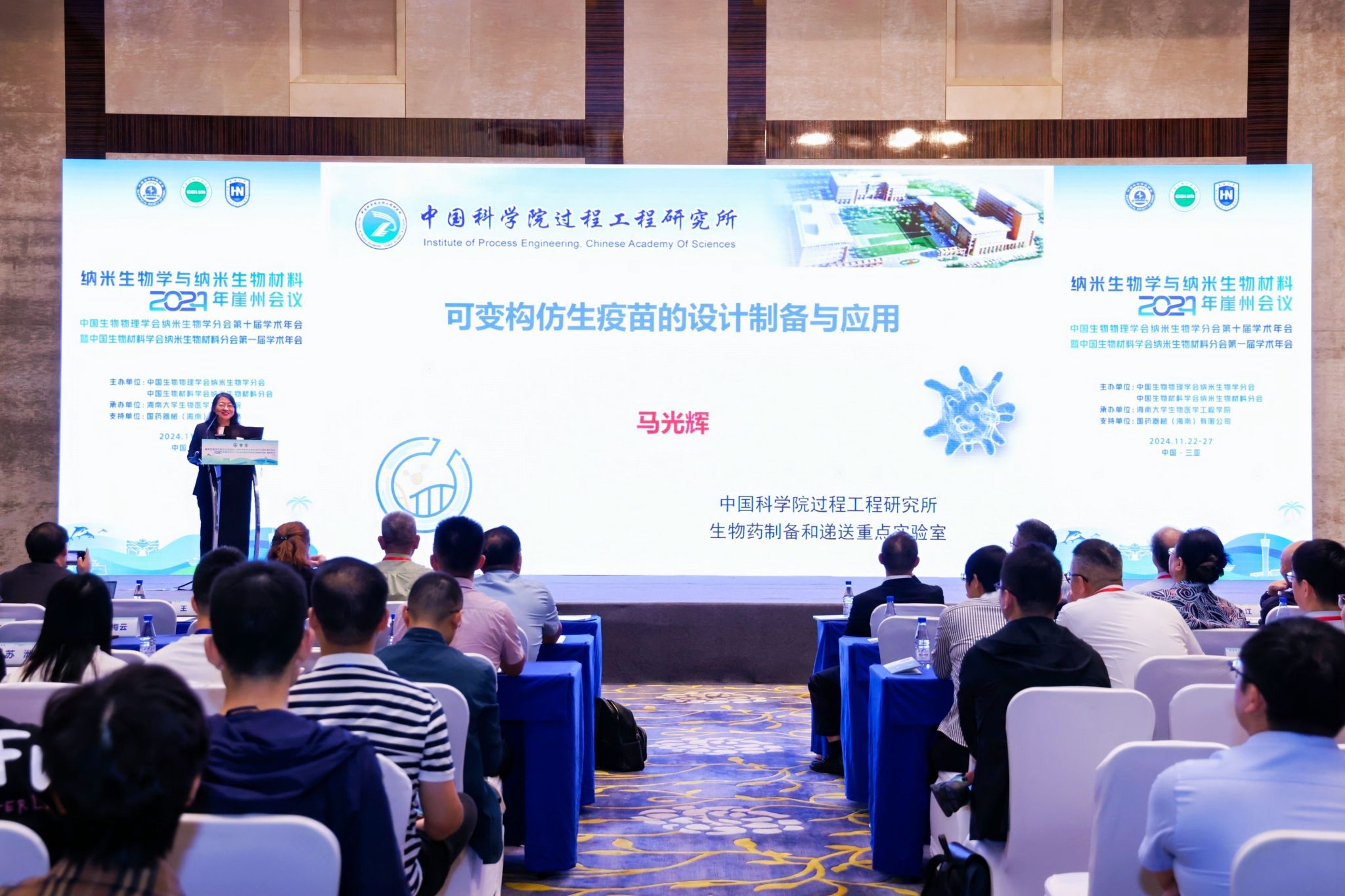 马光辉在大会上做题为《可变构仿生疫苗的设计制备与应用》的大会报告