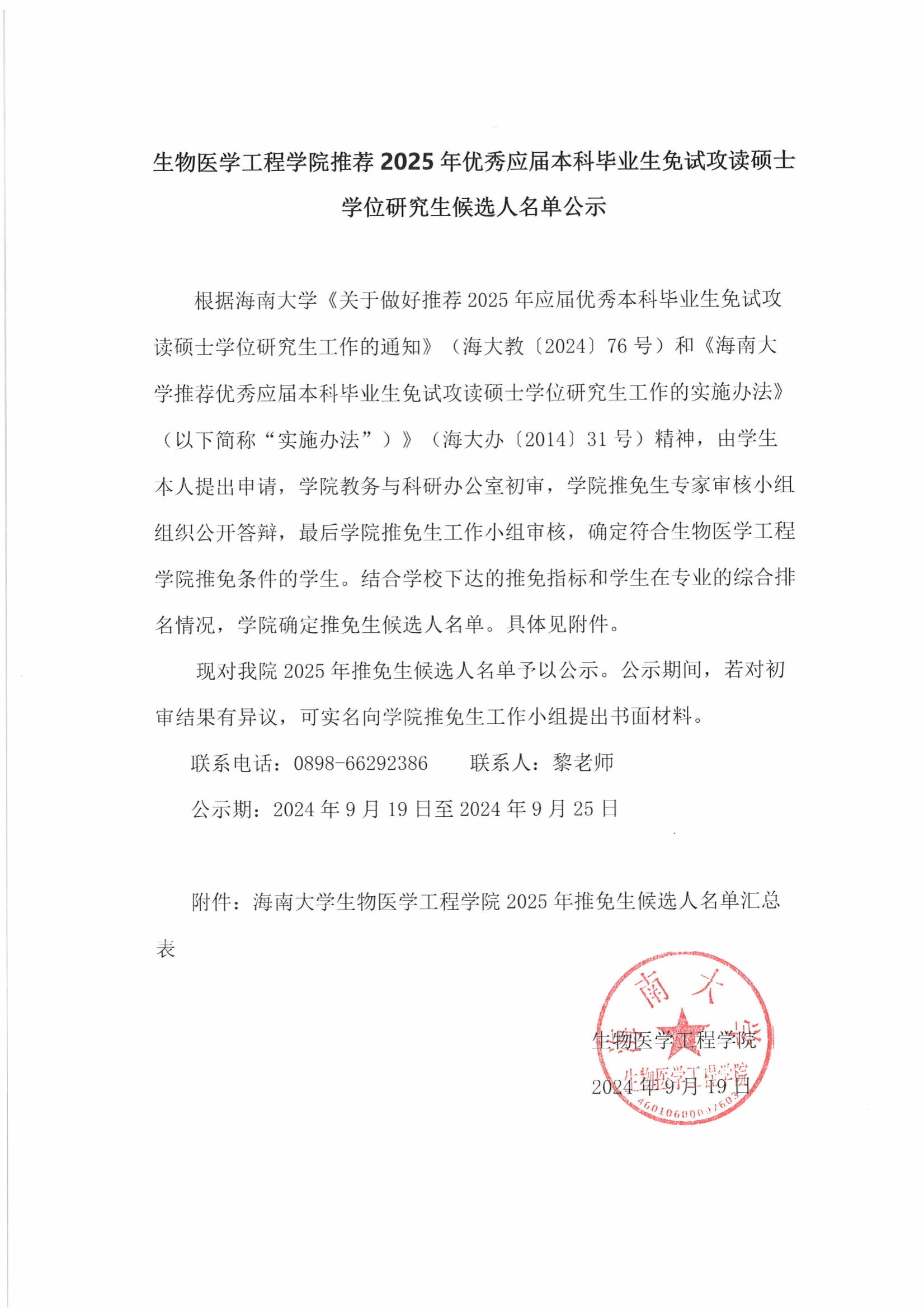 博牛 推荐2025年优秀应届本科毕业生免试攻读硕士学位研究生候选人名单公示