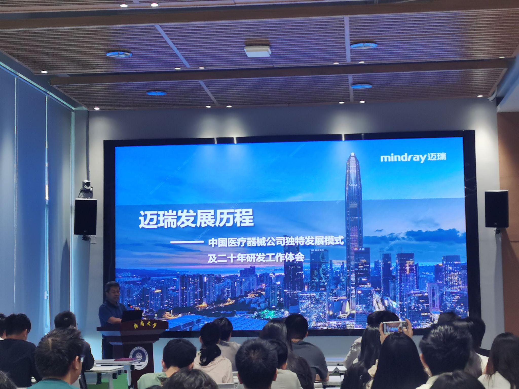 岑建教授凭借其丰富的行业经验,详细介绍了医疗电子仪器的发展历程、当前医疗技术与设备的应用情况以及未来的发展趋势。他通过分享迈瑞公司在医疗电子仪器研发方面的成功案例,为在场师生展示了医疗电子仪器的最新技术和创新成果。在之后的课堂教学中,岑建教授进一步详细地介绍了中国医疗器械的发展情况,内容不仅涵盖了医疗电子仪器的核心技术,还包括了市场需求、用户体验和法规标准等多个方面。